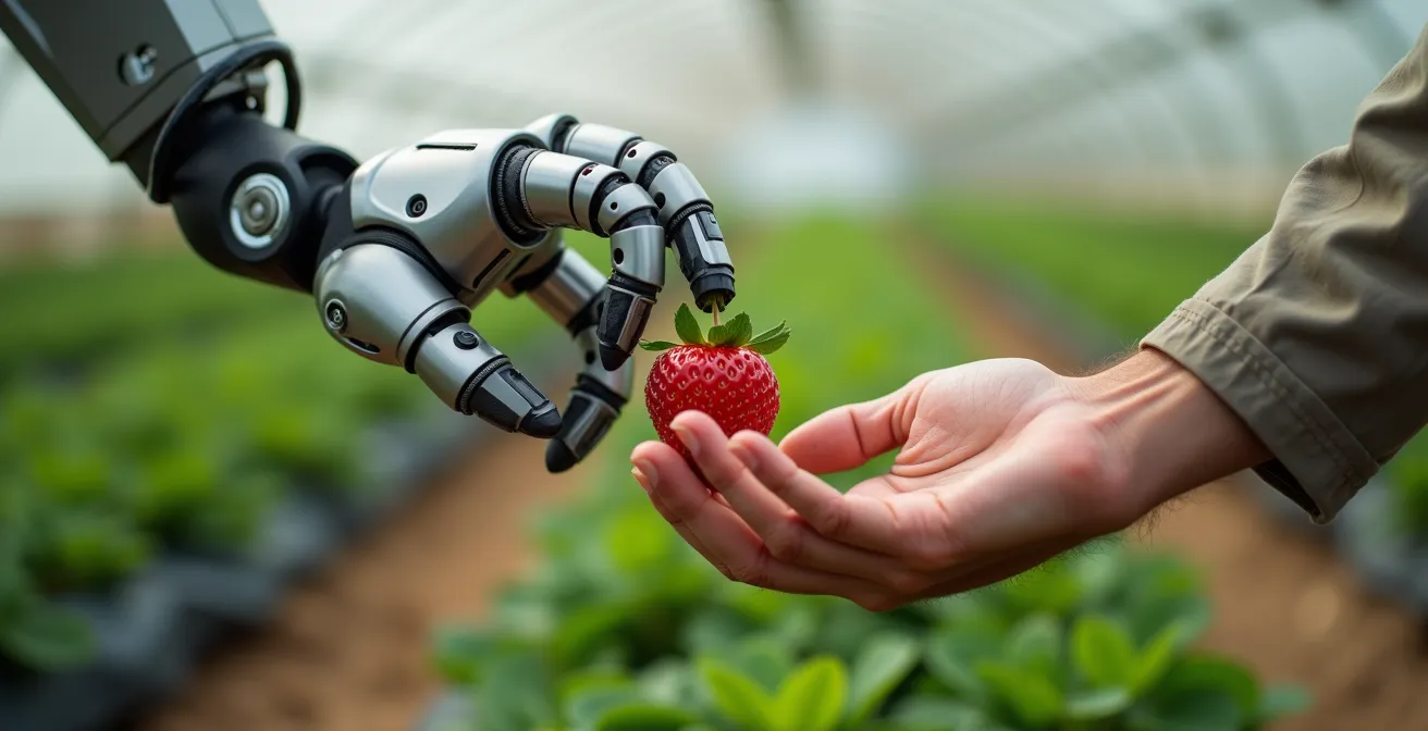 Cet écart, même d’une seconde, se multiplie par des milliers de fruits et peut impacter la rentabilité globale. La variabilité du vivant est l’obstacle majeur : aucun fruit n’est identique, les conditions de lumière changent, et le champ est un environnement non structuré. C’est pourquoi la robotisation a d’abord réussi dans des tâches plus simples comme le désherbage sur terrain plat, avant de s’attaquer au défi ultime de la récolte de fruits et légumes fragiles. La fraise est ainsi le **symbole de la complexité technologique** que les ingénieurs doivent surmonter pour imiter la main de l’homme.